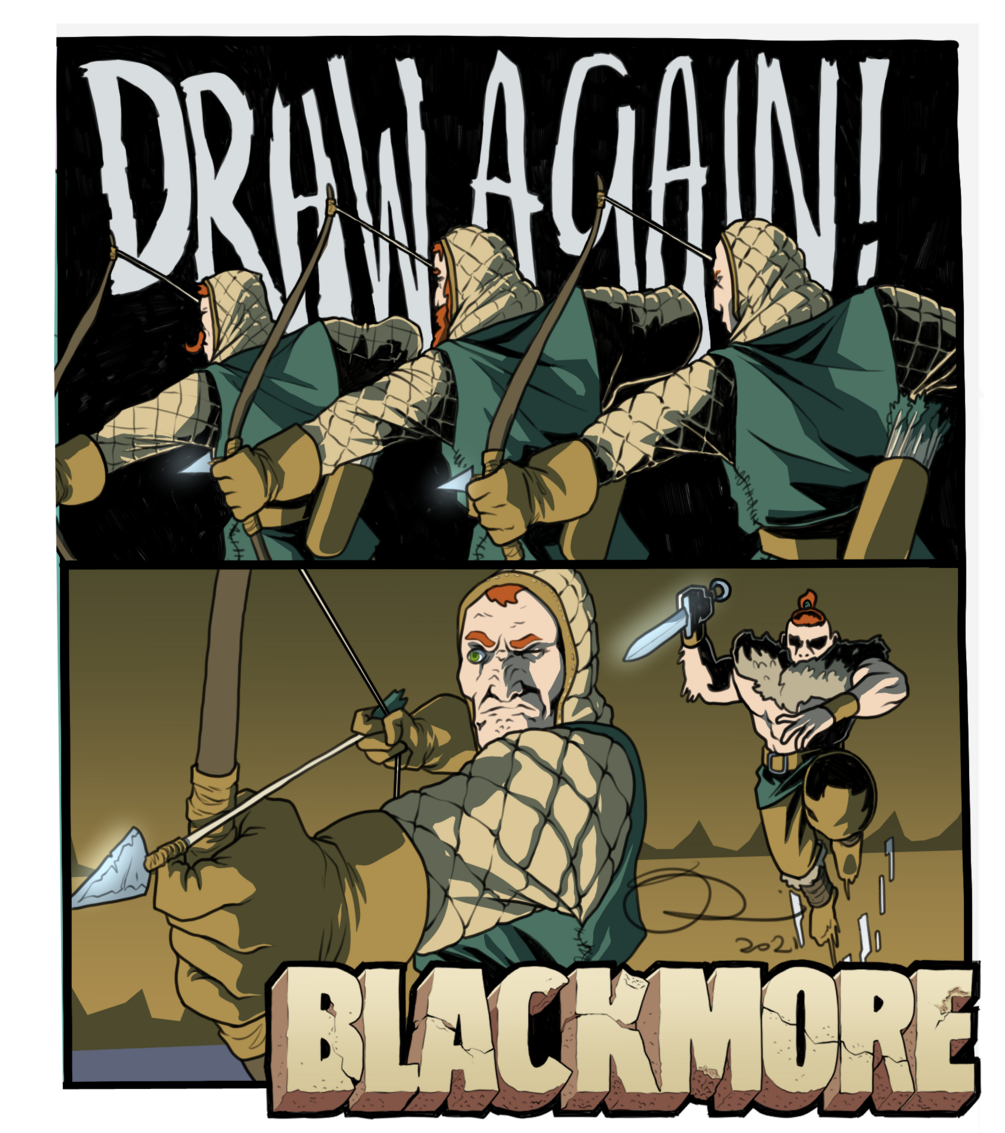 "Blackmore" is the first issue in a comic series focused on sword and sorcery, in the iron age fictional setting of Auhnn.